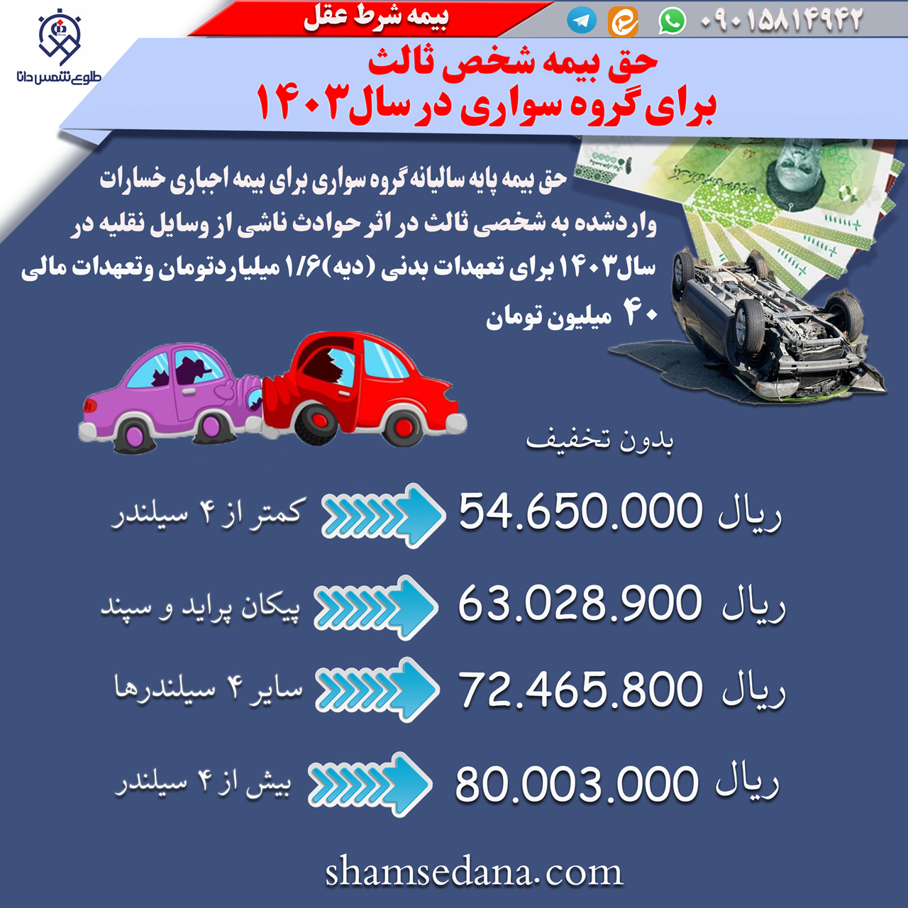 حق بیمه شخص ثالث برای گروه سواری در سال 1403
